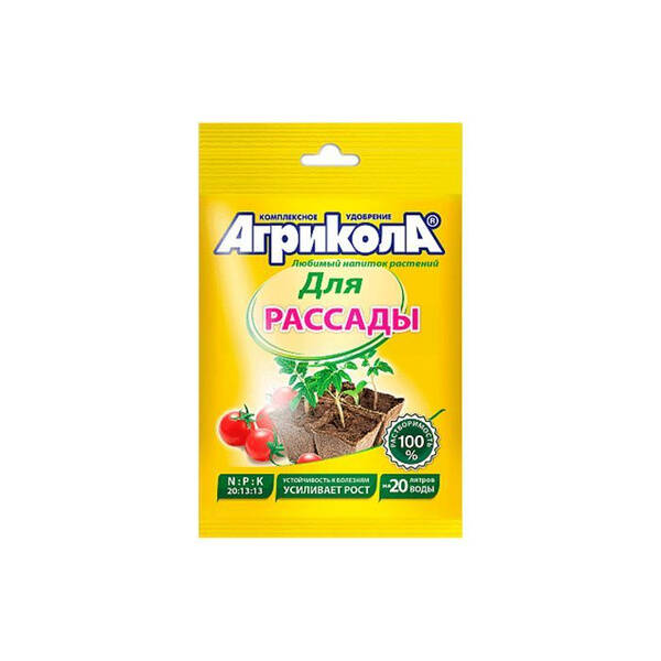 - АГРИКОЛА удобрение 50гр. (д/рассады овощных и цветочных культур) на 20л, пакет, 04-010