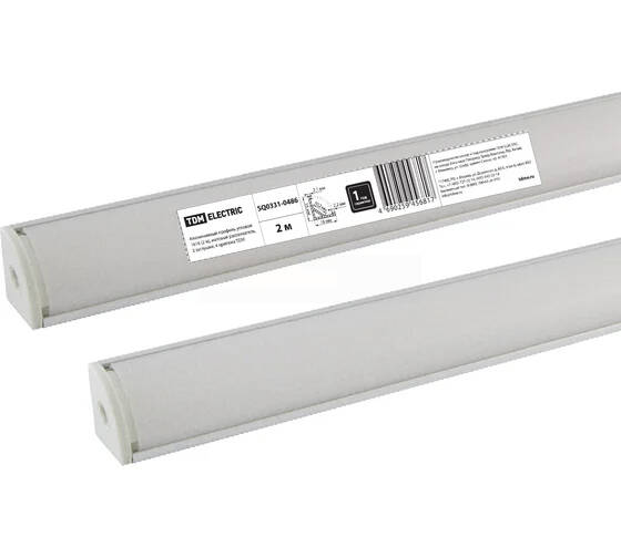 - Алюминиевый профиль угловой 1616 (2 м), матовый рассеиватель, 2 заглушки, 4 крепежа TDM