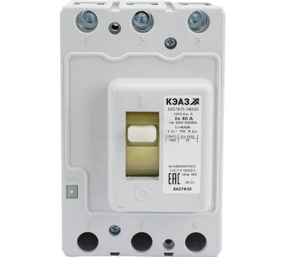 Добавить отзыв о товаре: Автоматический выключатель КЭАЗ ВА57Ф35 3-полюсный 40А 10кА