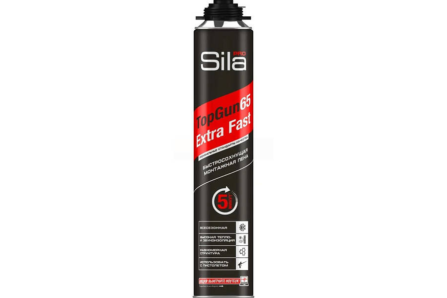 - Sila Pro TopGun 65 Extra Fast, быстросохнущая профессиональная монтажная пена 850мл