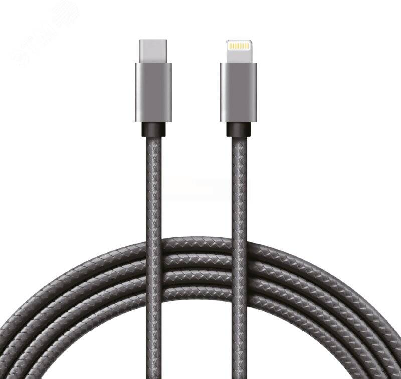- Кабель REXANT Type-C-Lightning PD, 1 м, графит, нейлон