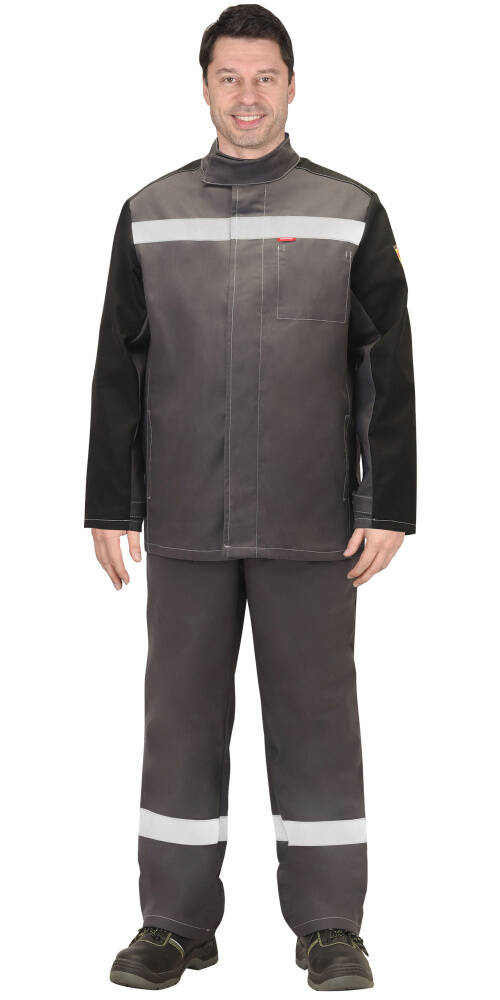 - Костюм сварщика "ГЕРКУЛЕС" летний: куртка, п/к темно-серый с черным, СОП 50мм р. 96-100/182-188 (ЧЗ)