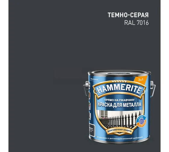 Отзывы о товаре «Краска для металлических поверхностей алкидная Hammerite гладкая RAL 7016 темно-серая 2л»