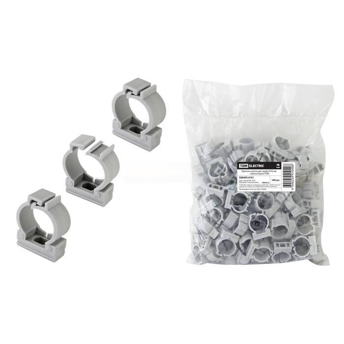 - Крепёж-клипса Tdm для труб с фиксатором серая 32мм х 40шт