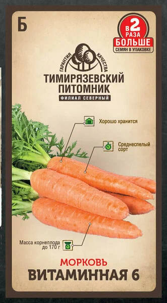 - Семена Морковь "Витаминная 6" Тимирязевский питомник, 4г