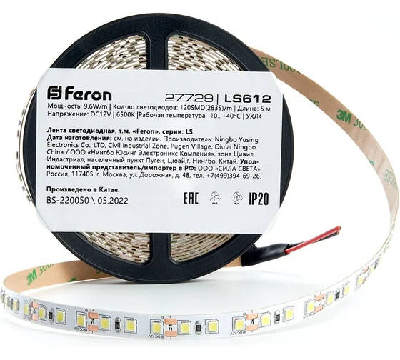 - Лента светодиодная LEDх120/м 5м 9.6w/m 12в дневной
