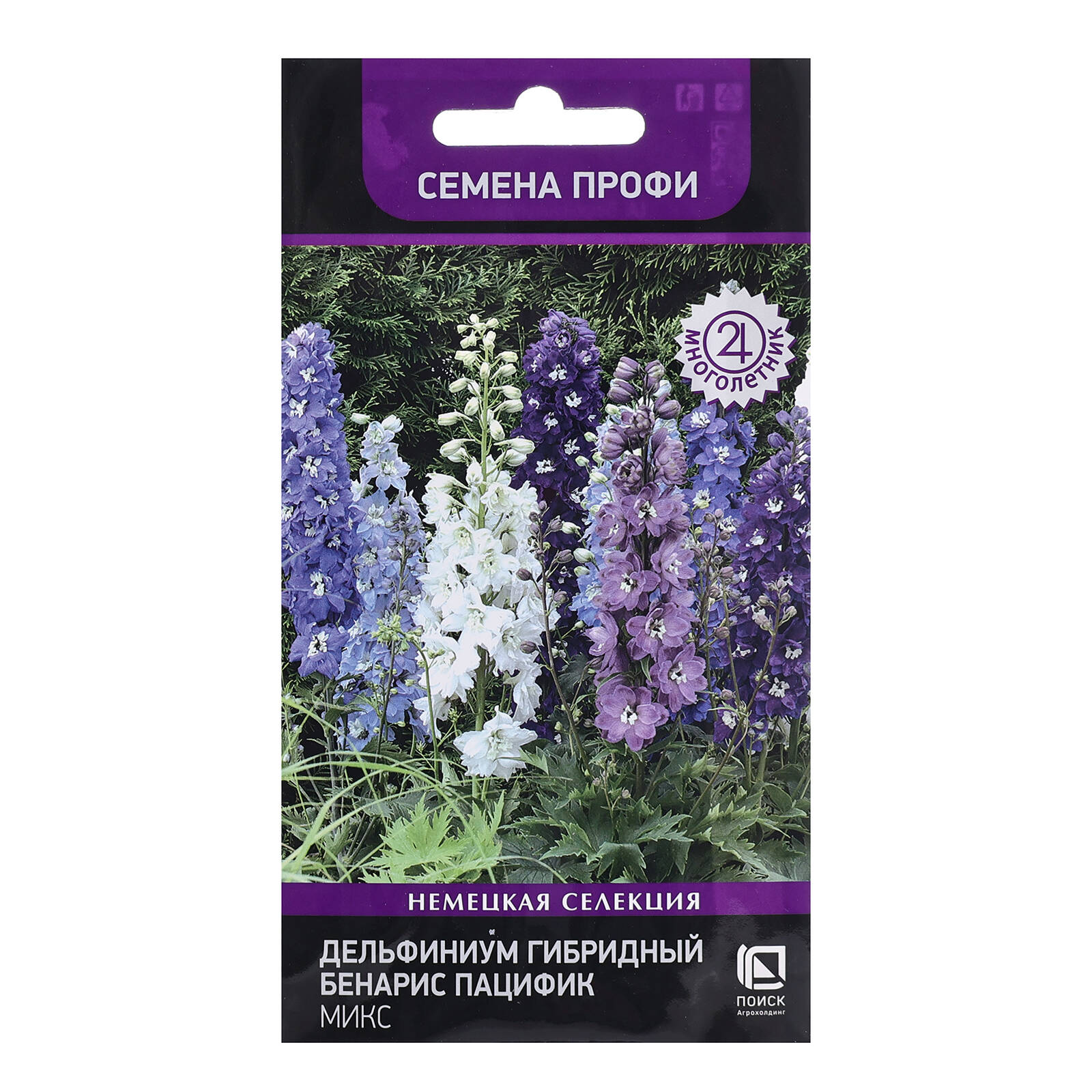 - Семена цветов Дельфиниум Гибридный Бенарис Пацифик Микс Поиск Семена Профи, 10 шт