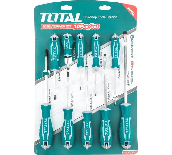 Добавить отзыв о товаре: Набор шлицевых и крестовых отверток TOTAL THT250610, 38-200мм, 10шт, Cr-V