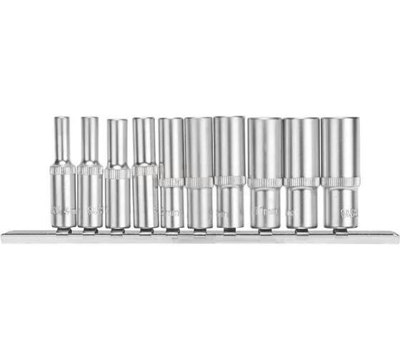 - Набор удлиненных торцевых головок 1/4, шестигранные, CrV, 10 шт., 4-13мм REXANT
