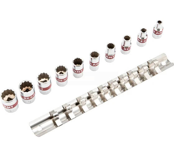 - Набор универсальных торцевых головок 1/4, двенадцатигранные, CrV, 10 шт., 4-13мм REXANT