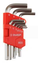 Набор ЗУБР Ключи "МАСТЕР" имб кор, Cr-V, сатинир покр, пластик держ, HEX 1,5-10мм, 9 пред