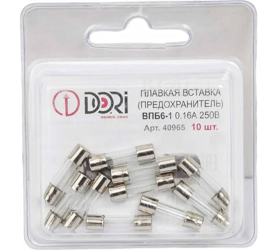 - Плавкая вставка ВПБ6-1 0,16А 250В, 10шт