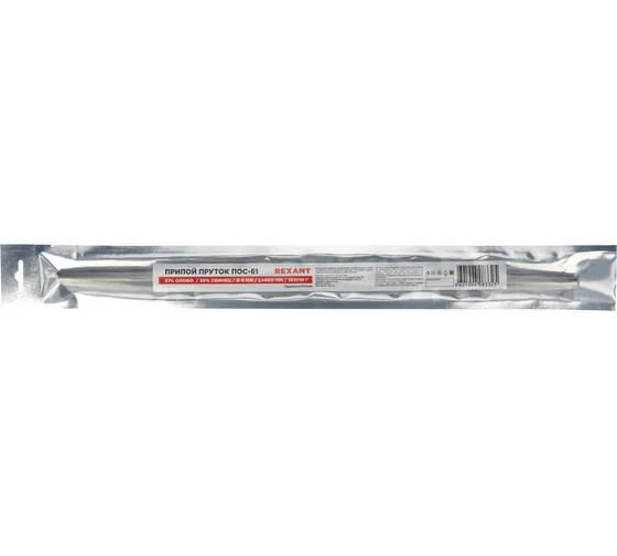 - Припой пруток ПОС-61 (Ø8мм, L=400мм, 195±10гр) REXANT