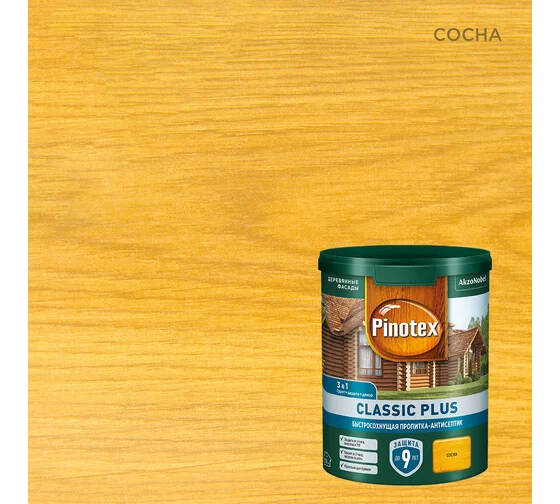 - Пропитка для дерева Pinotex Classic Plus 3 в 1 сосна 0,9л