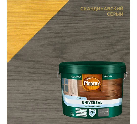 - Пропитка защитная для дерева Pinotex Universal 2 в 1 скандинавский серый 2,5л