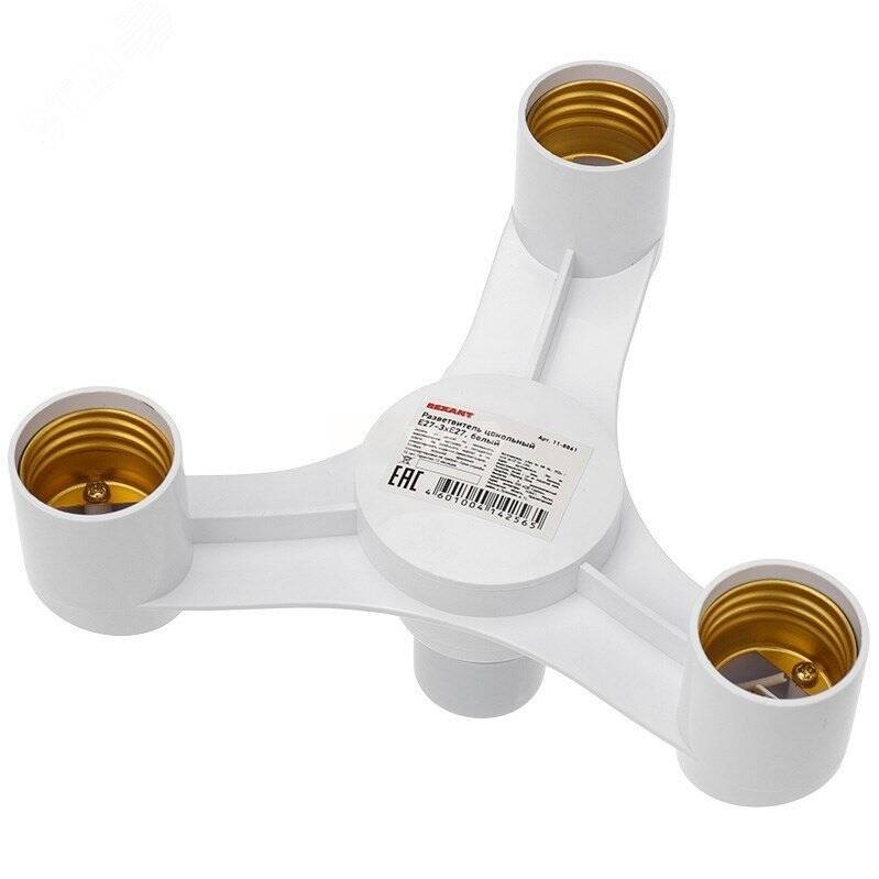 - Разветвитель цокольный Е27-3хЕ27 белый