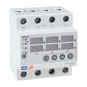 - Реле напряжения OptiRel D PVC-3-63 с ЖК-дисплеем и контролем тока 3Ф 63 А