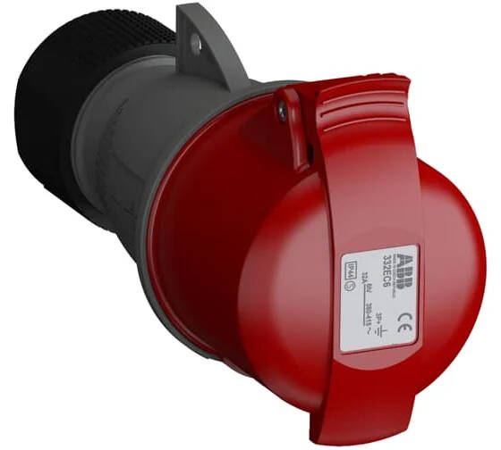 - Розетка кабельная АВВ Easy&Safe 332EC6 красная 3P+E 380В 32А IP44