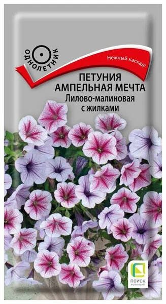 - Семена цветов Петуния Ампельная Мечта Лилово-малиновая с жилками Поиск, 5 шт