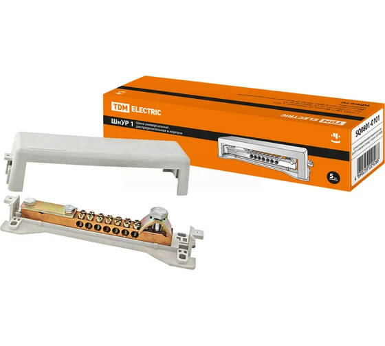 - Шина универсальная распределительная ШнУР 1 в корпусе 2 ввода 7 групп 160 А TDM