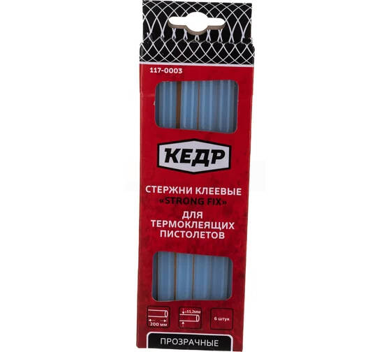 - СТЕРЖНИ КЛЕЕВЫЕ ДЛЯ ТЕРМОПИСТОЛЕТА 11,2 Х 20 СМ (ПРОЗРАЧН.) УПАК. 6 ШТ. "КЕДР" 117-0003