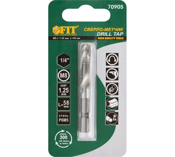 Отзывы о товаре «Сверло-метчик комбинированное метрическое быстрорежущая (hss) сталь Р6М5 М8х1,25мм 24/58мм»