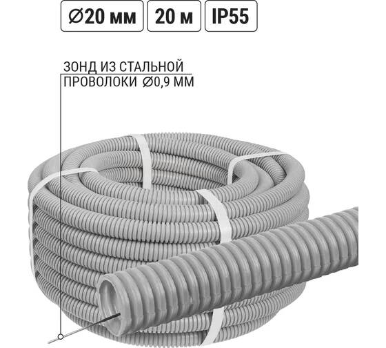 - Труба гофрированная ПВХ серая 20мм х 20м