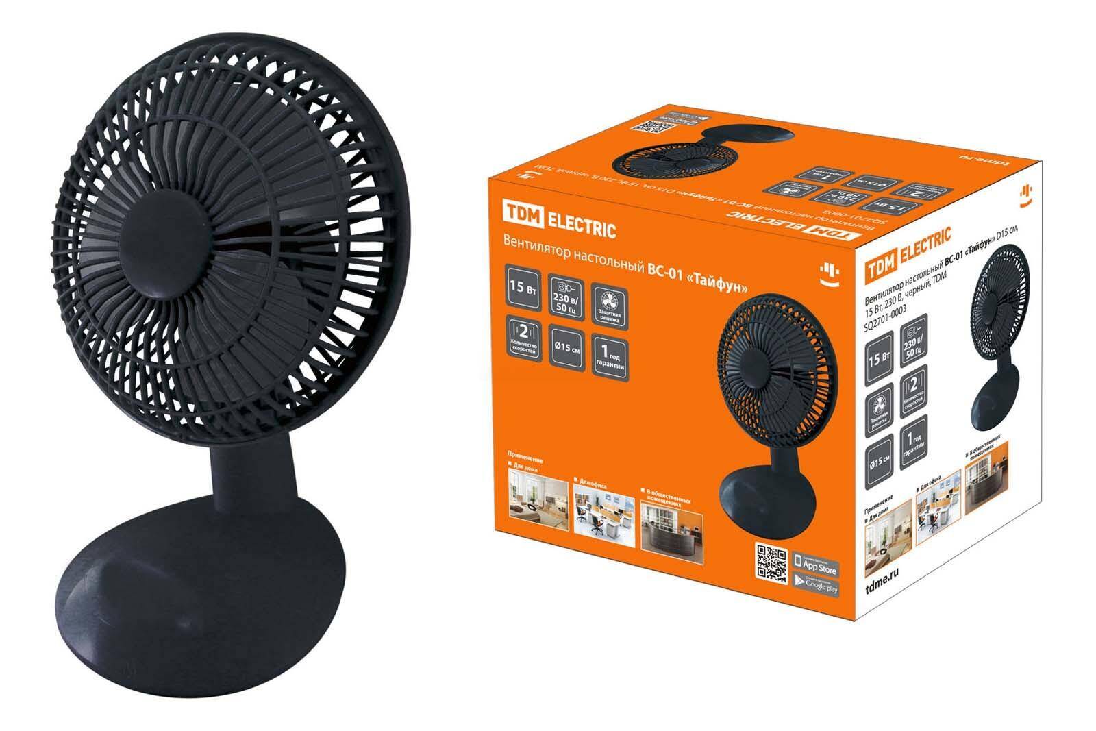 - Вентилятор настольный ВС-01 "Тайфун" D15 см, 15 Вт, 230 В, черный, TDM