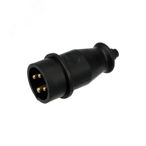 - Вилка влагозащищенная переносная 3Р+РЕ, 32А, IP44 каучук, черная REXANT
