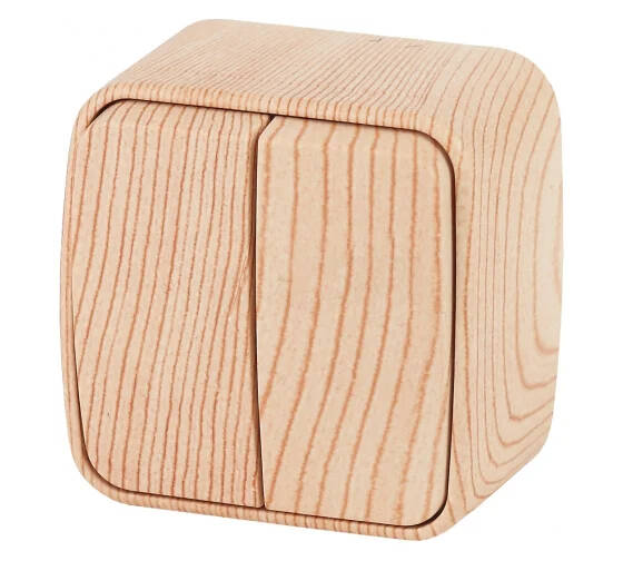 - Выключатель ЭРА Intro Polo 3-104-11 двухклавишный сосна ОУ 10A 250В IP20